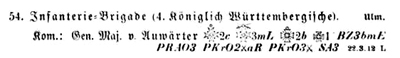 54. Infanterie-Brigade (4. Kgl. Württembergische) - Ulm