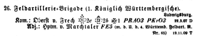 26. Feldartillerie-Brigade (1. Kgl. Württembergische) - Ludwigsburg (Cdr) |