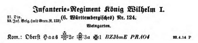 Infanterie-Regiment „König Wilhelm I.“ (6. Württembergisches) Nr. 124 -